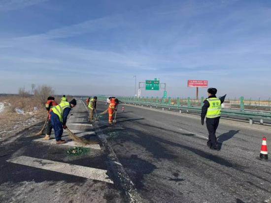 民警与联动工区用时三十分钟时间,将现场玻璃碎片清理完毕,民警反复确认路面安全后,方才解除了安全防护管制,有效避免了流量高峰时段,交通事故的发生。随后,民警组织肇事车辆对爆胎车辆进行赔付,并对遗撒货物司机进行严厉批评教育和相应行政处罚。
